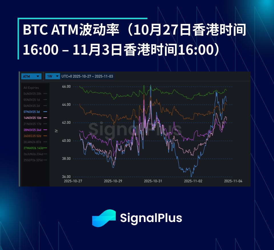 週に全体的に含浸したボラティリティ率が編成され、実際のボラティリティ率は初期の40秒(時間スケールHF)で維持され、そのレベルへの暗黙の変動の修正を確認します。 つまり、実際のボラティリティの大部分は、イベント(FOMC会議とトランプ・シオウピング会議)に対する先週の's反応によって運転され、低周波に基づいて、10,6-112kの狭い範囲に潜在する通貨の変動として低下しています。 これは、週末の前に短期のガンマ期限にいくつかの圧力をかけるが、価格が月曜日に$ 107 kに返したように、市場が以前よりも少ない液体残っているので、すぐに圧力が消えます。