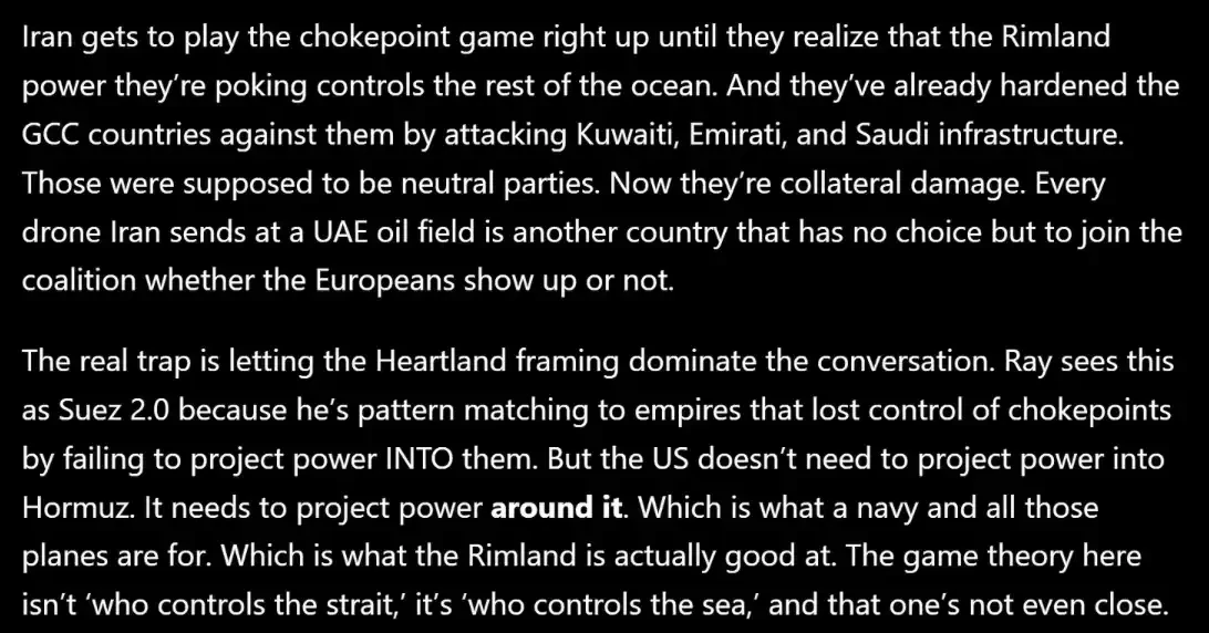 カットオフは、主にイランの「カスケード・ストライト」をレバレッジとして使用しようとしていますが、アメリカの利点(ノード制御ではなく、海制御)の戦略的誤算だけでなく、相互の国をプッシュする戦術的なドライブです。