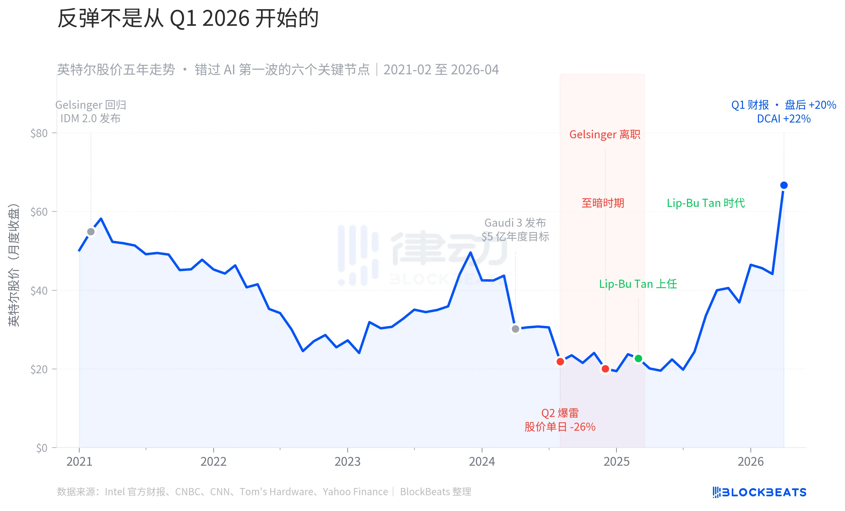 インテルの5年分のシェア価格を6つのキーイベントと組み合わせ、Q1の残高の20%は、実際に一連の以前の決定の終了です。