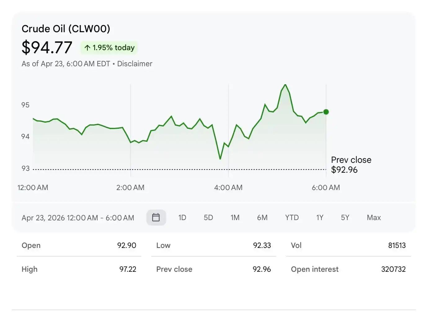 CENTCOM은 4 월 23 일에 발표되었습니다. BLOCKADE는 10,000 미국 군인, 17 개 이상의 군함과 100 개 이상의 항공기를 포함했으며 31 개 이상의 선박을 주문했으며 항구로 돌아갑니다. 이란 후 하루 4 퍼센트에 의해 장미 BRENT CRUDE 오일 가격 이란은 배럴 당 $ 100에 접근 스트라이크를 다시 열기 위해 REFUSAL을 발표했다。