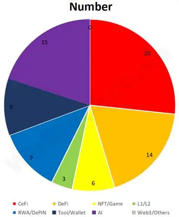 Dari jumlah tersebut, CeFi menyumbang sekitar 26,7 persen, DeFi untuk sekitar 18,7 persen, NFT/GameFi untuk sekitar 8 persen, L1/L2 untuk sekitar 4 persen, RWA/DePIN untuk sekitar 12 persen, Tool/Wallet untuk sekitar 10,7 persen dan AI untuk sekitar 20 persen。