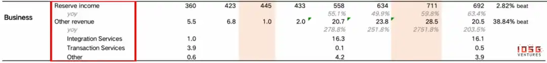 Other revenues can be seen to be 28.5M, which significantly exceeds market expectations. However, given that the base figure for the same period last year was only $1 million, the comparison is of limited interest. More meaningful ring data show that the rate of increase in this quarter is 20 per cent, up from 15 per cent in the previous quarter, indicating that the income block is actually growing rapidly. However, “other income” still accounts for less than 4 per cent of total revenue, and it will take some time to change the single income structure of Circle。