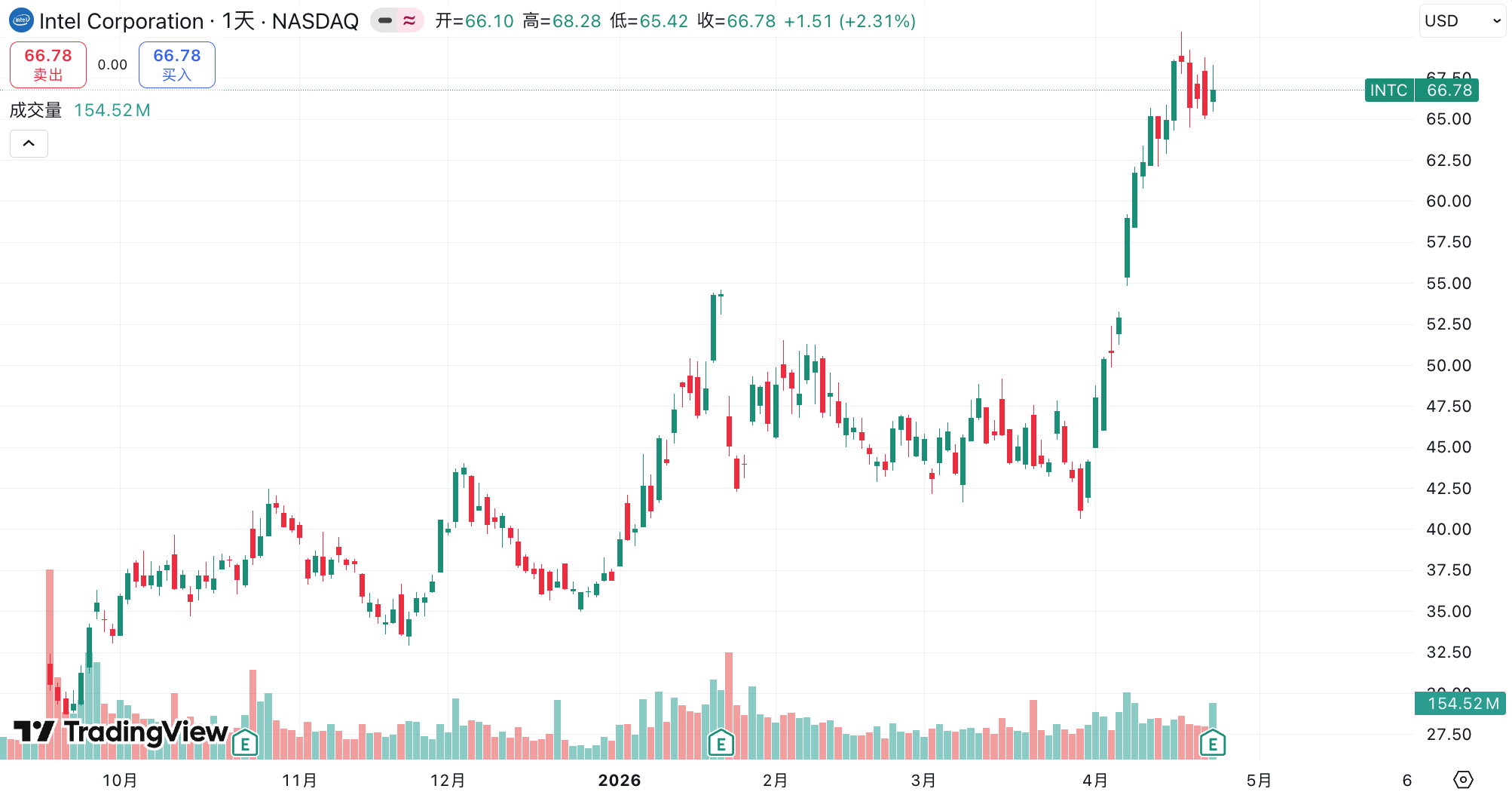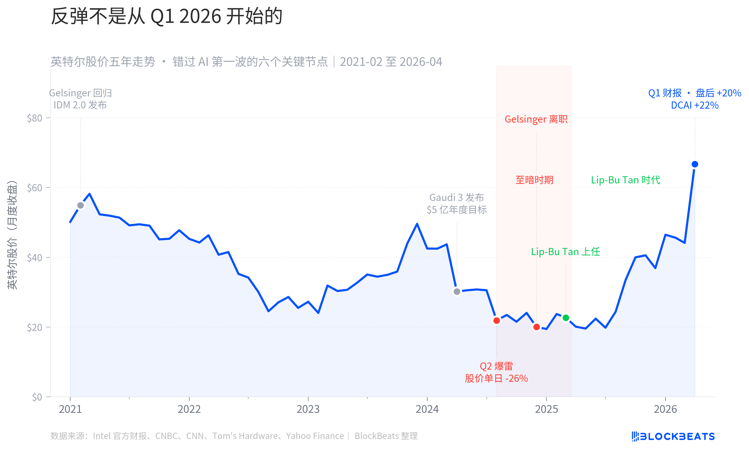 การวางราคาหุ้น 5 ปีของ INTEL ร่วมกับ 6 เหตุการณ์หลัก 20% ของความสมดุลของ Q1。