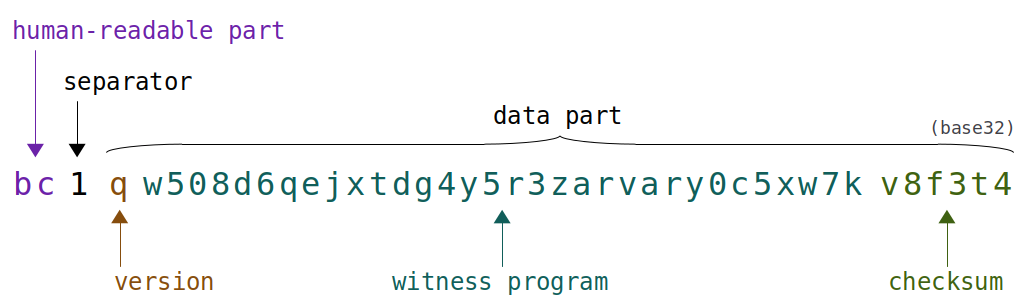 Bech32地址编码格式定义如下: