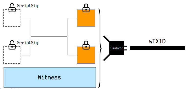 单个见证交易的交易ID(wTXID)的形成原理示意图