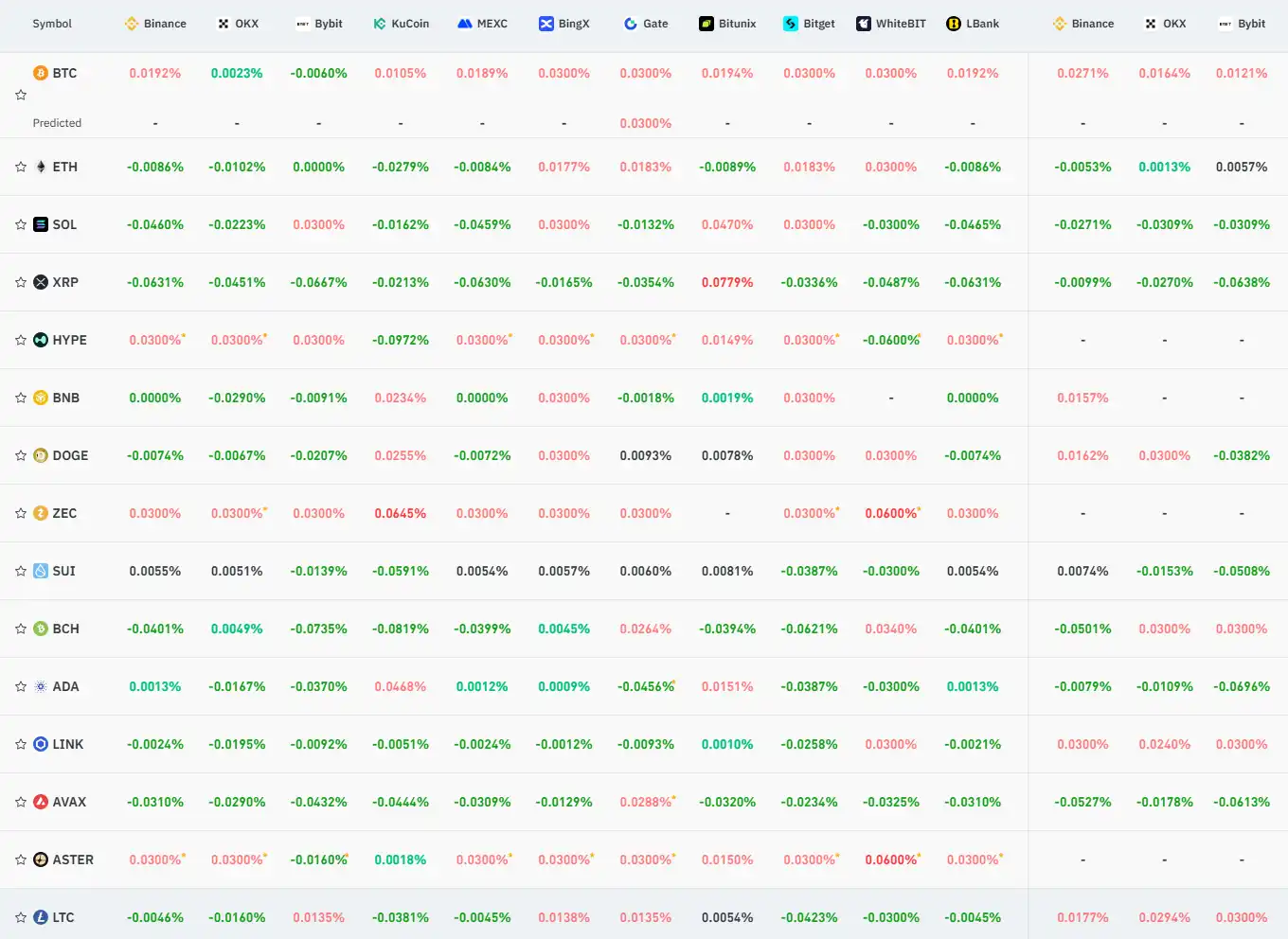 每日市场整体资金热度(根据资金费率反映)与代币解锁